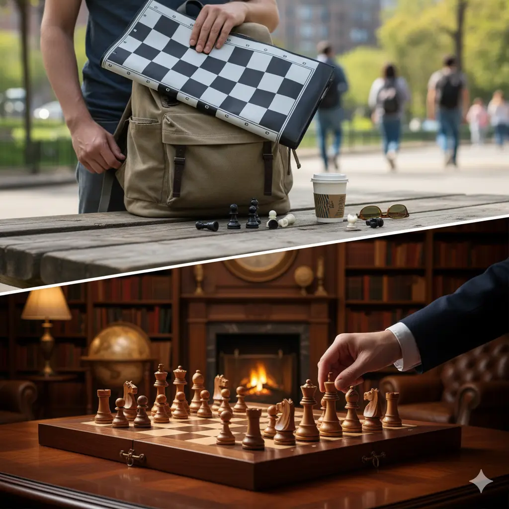 There’s no “right” answer here—it’s all about what works for you. Mats give you freedom and toughness for life on the go. Wooden boards bring tradition and a bit of swagger. Either way, as long as you’re playing, you’re winning. Just don’t lose all your pieces under the couch, okay? At the end of the day, it’s not about the surface, it’s about the game. Choose the setup that makes you want to play more. Because, let’s be honest, nobody ever became a chess master by just staring at a board, no matter how pretty it is.