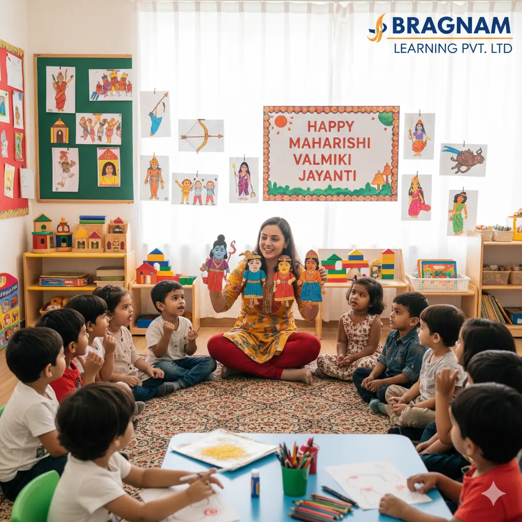 At Bragnam Learning Pvt Ltd, we take pride in nurturing values, knowledge, and culture among young learners across our extensive network of preschools and early learning centres. Today, on the auspicious occasion of Maharishi Valmiki Jayanti, we honour the life and teachings of one of India’s greatest poets, philosophers, and spiritual luminaries — Maharishi Valmiki, the revered author of the Ramayana.